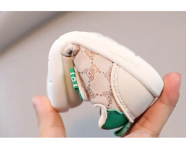 Adidasi crem pentru baietei - Green Teddy