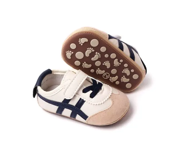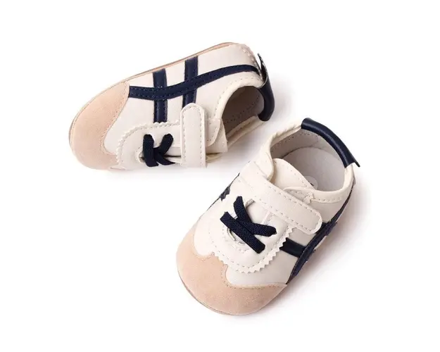 Marimi: 3 -6 luni ( lungime talpita la interior 10,5 cm, lungime talpita la exterior 11 cm) 6-9 luni ( lungime talpita la interior 11,5 cm, lungime talpita la exterior 12 cm) 9-12 luni (lungime talpita la interior 12,5 cm, lungime talpita la exterior 13 cm) Adidasi pentru baietei, se inchid cu sireturi din elastic si bareta cu arici intr-o parte. Culoare: ivoire cu insertii negre Material: tip piele ecologica Talpa: cauciuc moale antiderapant Produsul cu denumirea Adidasi ivoire cu dungi negre pentru baietei face parte din brandul Eurobaby, se afla in categoria Barbie si subcategoria