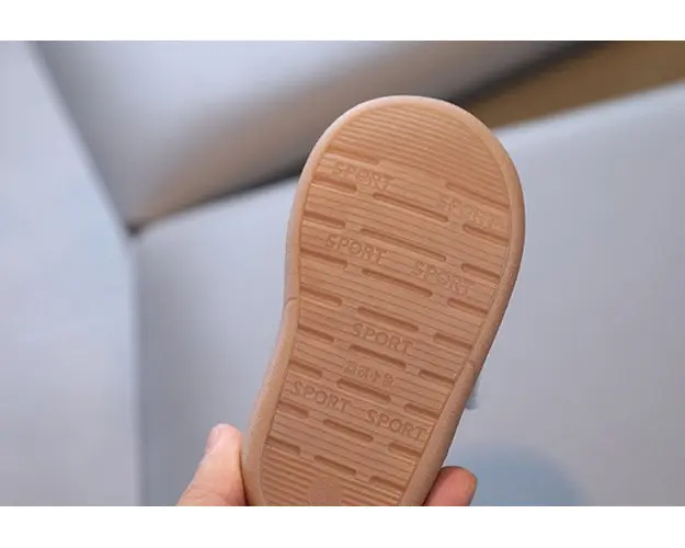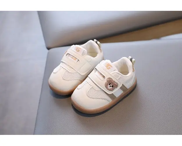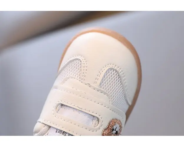 Marimi: 19 (lungime talpita in interior 11,5 cm) (marime producator 16) 20 (lungime talpita in interior 12 cm) (marime producator 17) 21 (lungime talpita in interior 12,5 cm) (marime producator 18) 22 (lungime talpita in interior 13 cm) (marime producator 19) 23 (lungime talpita in interior 13,5 cm) (marime producator 20) Adidasi pentru bebelusi, din material textil cu insertie de material tip piele ecologica, se inchid cu bareta cu arici intr-o parte, pe care aplicat un ursulet plusat. Culoare: ivoire cu dungi laterale crem Talpa: cauciuc moale si flexibil, ideal pentru primii pasi Produsul cu denumirea Adidasi ivoire pentru bebelusi - Teddy face parte din brandul Eurobaby, se afla in categoria Barbie si subcategoria