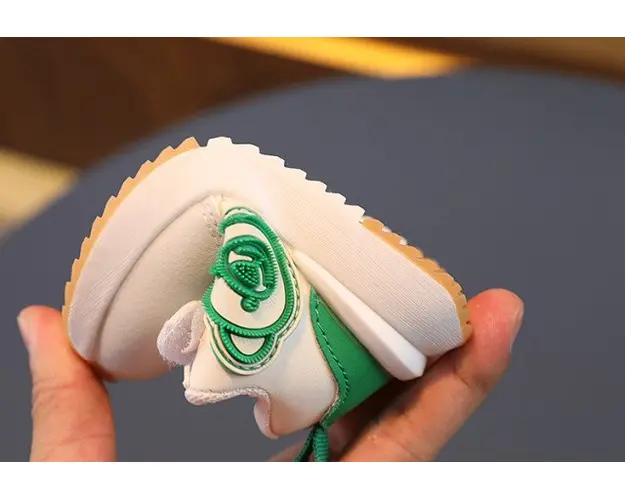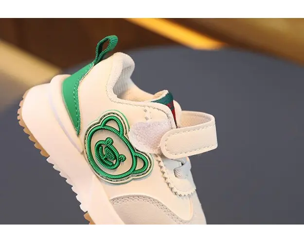 Marimi: 9-12 (lungime talpita in interior 11,5 cm) (marime producator 16) Marimea 20 (lungime talpita in interior 12 cm) (marime producator 17) Marimea 21 (lungime talpita in interior 12,5 cm) (marime producator 18) Marimea 22 (lungime talpita in interior 13 cm) (marime producator 19) Marimea 23 (lungime talpita in interior 13,5 cm) (marime producator 20) Adidasi pentru baietei, din material tip piele ecologica, cu un ursulet verde aplicat intr-o parte. Se inchid cu sireturi din elastic si bareta cu arici intr-o parte Culoare: ivoire cu insertii gri si verzi Talpa: cauciuc flexibil ce faciliteaza mersul cu usurinta al micutului Produsul cu denumirea Adidasi ivoire cu verde - Teddy face parte din brandul Superfinish, se afla in categoria Barbie si subcategoria