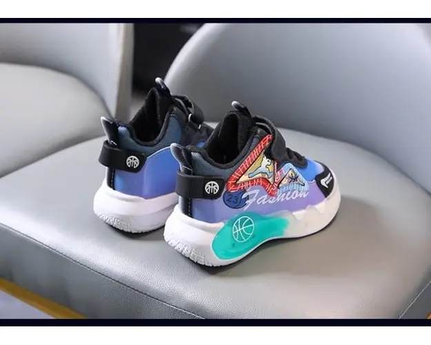 Marimi: 21 (lungime talpita in interior 12,5 cm) 22 (lungime talpita in interior 13 cm) 23 (lungime talpita in interior 13,5 cm) 24 (lungime talpita in interior 14 cm) 25 (lungime talpita in interior 14,5 cm) Culoare: nuante de albastru, verde si negru Material: textil cu insertie de piele ecologica Inchidere: sireturi din elastic si bareta cu arici Talpa: flexibila, din cauciuc cu beculete colorate ce se activeaza in timpul mersului. Bateriile sunt sub talpica si pot fi schimbate. Adidasi pentru copii cu design modern si lumini LED integrate in talpa. Acesti adidasi sunt perfecti pentru activitati zilnice si joaca, oferind confort si stil. Cu un design vibrant, inspirat din lumea baschetului, si culori atractive, acesti adidasi se remarca prin detalii grafice captivante. Sistemul de inchidere cu banda velcro si siret elastic asigura o incaltare rapida si sigura. Luminile colorate din talpa adauga un element distractiv, fiind ideali pentru copiii plini de energie si activi. Produsul cu denumirea Adidasi cu luminite pentru baietei - Fashion face parte din brandul Eurobaby, se afla in categoria Barbie si subcategoria