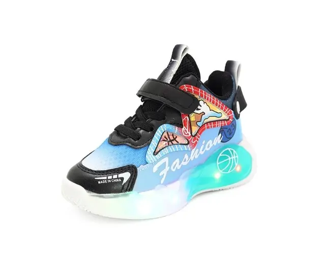 Marimi: 21 (lungime talpita in interior 12,5 cm) 22 (lungime talpita in interior 13 cm) 23 (lungime talpita in interior 13,5 cm) 24 (lungime talpita in interior 14 cm) 25 (lungime talpita in interior 14,5 cm) Culoare: nuante de albastru, verde si negru Material: textil cu insertie de piele ecologica Inchidere: sireturi din elastic si bareta cu arici Talpa: flexibila, din cauciuc cu beculete colorate ce se activeaza in timpul mersului. Bateriile sunt sub talpica si pot fi schimbate. Adidasi pentru copii cu design modern si lumini LED integrate in talpa. Acesti adidasi sunt perfecti pentru activitati zilnice si joaca, oferind confort si stil. Cu un design vibrant, inspirat din lumea baschetului, si culori atractive, acesti adidasi se remarca prin detalii grafice captivante. Sistemul de inchidere cu banda velcro si siret elastic asigura o incaltare rapida si sigura. Luminile colorate din talpa adauga un element distractiv, fiind ideali pentru copiii plini de energie si activi. Produsul cu denumirea Adidasi cu luminite pentru baietei - Fashion face parte din brandul Eurobaby, se afla in categoria Barbie si subcategoria
