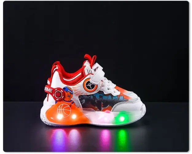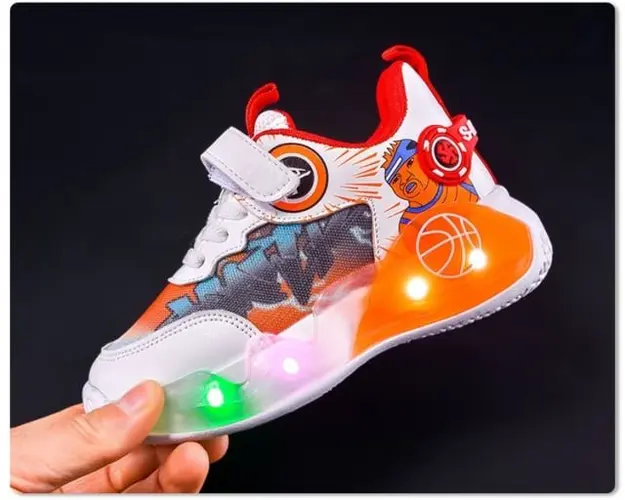 Marimi: 21 (lungime talpita in interior 12,5 cm) 22 (lungime talpita in interior 13 cm) 23 (lungime talpita in interior 13,5 cm) 24 (lungime talpita in interior 14 cm) 25 (lungime talpita in interior 14,5 cm) Culoare: alb cu portocaliu si bleu Material: textil cu insertie de piele ecologica Inchidere: sireturi din elastic si bareta cu arici Talpa: flexibila, din cauciuc cu beculete colorate ce se activeaza in timpul mersului. Bateriile sunt sub talpica si pot fi schimbate. Adidasi pentru copii, cu lumini LED integrate in talpa si design vibrant cu detalii inspirate din baschet. Acesti adidasi ofera confort si sustinere pentru activitatile zilnice, fiind usor de incaltat datorita sistemului de inchidere cu banda velcro. Luminile colorate adauga un plus de distractie, iar materialele de calitate asigura durabilitate. Perfecti pentru copiii activi, acesti adidasi combina stilul modern cu functionalitatea. Produsul cu denumirea Adidasi cu luminite pentru baietei - Legia face parte din brandul Eurobaby, se afla in categoria Barbie si subcategoria