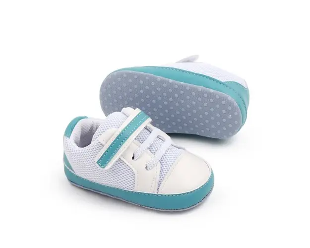 Marimi: 3-6 luni (lungimea talpitei: la interior - 10,5 cm; la exterior - 11 cm) 6-9 luni (lungimea talpitei: la interior - 11,5 cm; la exterior - 12 cm) 9 -12 luni (lungimea talpitei: la interior - 12,5 cm; la exterior - 13 cm) Culoare: alb cu insertii turcoaz Material: textil cu insertie de material tip piele ecologica Inchidere: sireturi din elastic si bareta cu arici Talpa: textil cu inscriptie antiderapanta Descopera adidasii sport pentru bebelusi, perfecti pentru micutii activi. Design modern alb cu detalii turcoaz, ofera confort si sustinere datorita inchiderii cu arici si sireturi elastice. Perfecti pentru activitati zilnice si tinute casual. Produsul cu denumirea Adidasi sport pentru bebelusi albi cu insertii turcoaz face parte din brandul Eurobaby, se afla in categoria Barbie si subcategoria