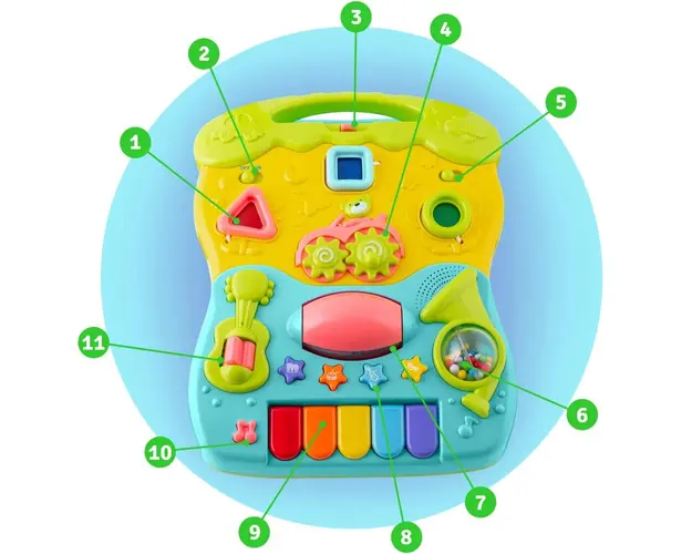 Pe langa faptul ca invata sa mearga , produsul este ideal pentru invatarea culorilor si a formelor .Caracteristici- Panoul detasabil (pentru a scoate panoul, apasati butonul situat in partea de jos a Produsul cu denumirea Antepremergator educational 2in1 Ricokids Walker Car Turcoaz face parte din brandul Silikids, se afla in categoria Litere- limbaj- cifre si subcategoria