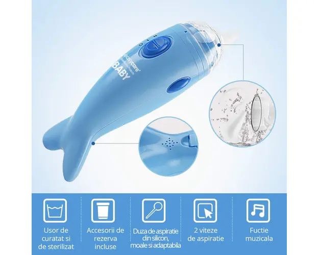 Aspirator nazal electric EasyCare Baby cu 2 viteze de aspiratie si melodii
