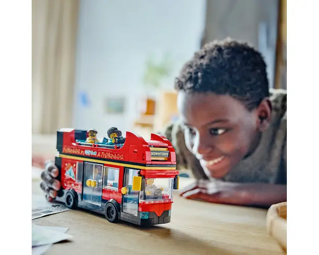 Distreaza-i pe copii intr-un tur al orasului plin de aventuri cu setul Autobuz turistic rosu cu etaj LEGO® City (60407) pentru copii de 7 ani si mai mari. Copiii pot roti indicatorul cu destinatiile, pot lua pasagerii care asteapta si ii pot aseza pe puntea inferioara sau pe cea superioara, in aer liber, de observare a obiectivelor turistice. Acest model emblematic este ideal pentru etalare si include 5 minifigurine, intre care un bebelus cu carucior, pentru joaca fantezista si povesti.Acest autobuz LEGO City rosu include un detaliat ghid de constructie tiparit si instructiuni 3D in aplicatia LEGO Builder, un partener de constructie digital, cu instrumente intuitive de apropiere si rotire care permit copiilor sa vizualizeze modelele din toate unghiurile pe masura ce le construiesc.Seturile LEGO City reprezinta cadouri grozave pentru copii de sarbatori si zile de nastere si contin vehicule cool, structuri realiste si personaje distractive care inspira joaca fantezista nelimitata. Copiii pot combina acest autobuz LEGO City cu altele (vandute separat) din gama LEGO City pentru a extinde posibilitatile de joaca. Produsul cu denumirea Autobuz turistic rosu cu etaj face parte din brandul Coletto, se afla in categoria Jucarii outdoor si subcategoria Produse noi