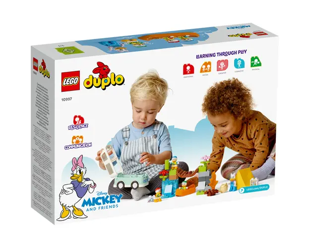 Umple sesiunile de joaca cu ore de invaţare vesela cu setul LEGO® DUPLO® Disney Mickey and Friends Aventura in camping (10997). Plina de activitaţi creative, aceasta jucarie de construcţie ii ajuta pe micuţii de 2+ ani sa inveţe despre rezilienţa şi munca in echipa in timpul excursiilor palpitante cu cortul alaturi de personajul Disney Daisy Duck şi nepoţii sai.Set construibil care dezvolta imaginaţiaCei mici pornesc intr-o aventura in mijlocul naturii cu Daisy Duck şi Huey, Dewey şi Louie, intr-o rulota ce poate fi condusa. Ei gasesc o harta a comorilor şi navigheaza pe rau in canoe, trecand de podul instabil care ameninţa sa rastoarne un bolovan in apa. Descopera comoara in spatele cascadei construibile, apoi fac un foc de tabara şi se adapostesc in cort.Invaţa abilitaţi pentru tot restul vieţiiCei mici dezvolta abilitaţi motorii fine construind aceasta jucarie educativa. Interpretarea in joaca a scenelor de familie ii ajuta sa inveţe despre empatie, exprimarea de sine şi colaborare, etape de dezvoltare pe care parinţii le pot observa participand la jocul animat al copiilor. Produsul cu denumirea Aventuri in camping face parte din brandul Coletto, se afla in categoria Jucarii outdoor si subcategoria Produse noi
