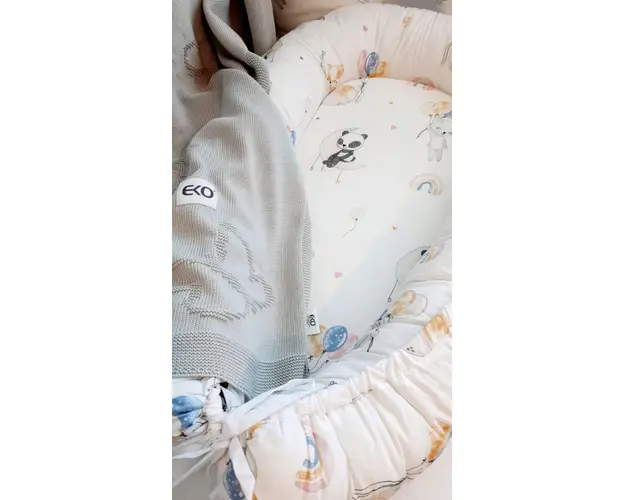 Cuibusorul pentru bebelusi este realizat din bumbac 100 si umplutura din fibre de silicon.nbspOfera bebelusului protectie si un somn linistit.nbspFolosind baby nest bebelusul tau poate dormi oriundebu Produsul cu denumirea Baby nest Eko din bumbac Balloons face parte din brandul Xkko, se afla in categoria Costume carnaval copii si subcategoria