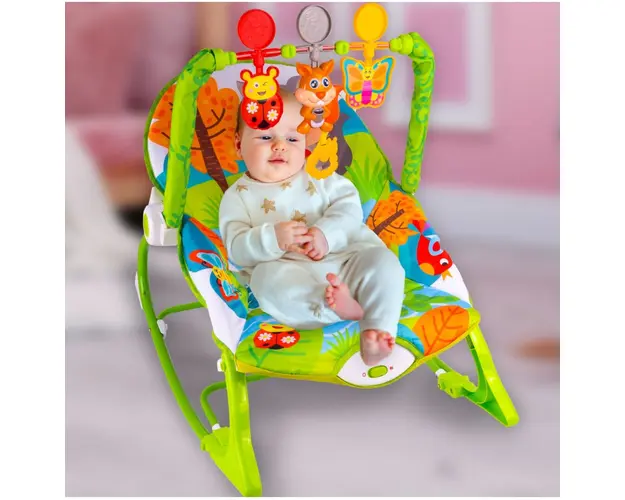 Balansoar multifunctional cu vibratii bara de jucarii si muzica Green