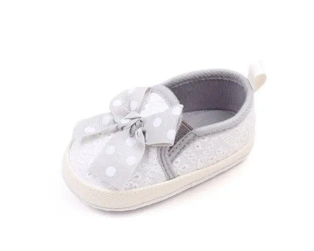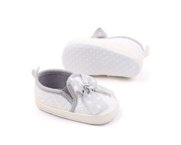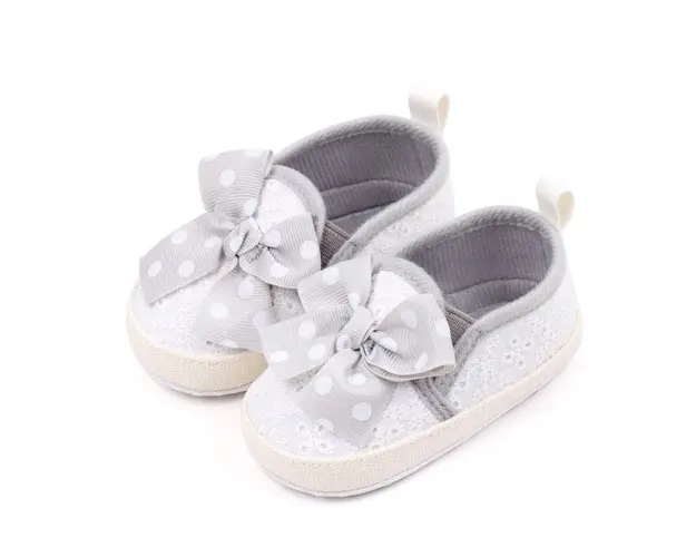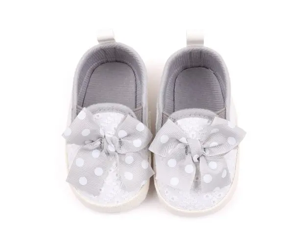 Marimi: 3 -6 luni ( lungime talpita la interior 10,5 cm, lungime talpita la exterior 11 cm) 6-9 luni ( lungime talpita la interior 11,6 cm, lungime talpita la exterior 12 cm) 9-12 luni (lungime talpita la interior 12,7 cm, lungime talpita la exterior 13 cm) Balerini pentru fetite, brodati, prevazuti cu o fundita gri cu buline, aplicata in fata. Culoare: alb Material: textil Talpa: material textil cu inscriptie antiderapanta Produsul cu denumirea Balerini albi cu fundita gri face parte din brandul , se afla in categoria Tetine si subcategoria