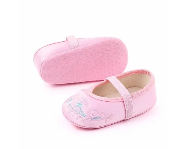 Marimi: 3 -6 luni ( lungime talpita la interior 10,5 cm, lungime talpita la exterior 11 cm) 6-9 luni (lungime talpita la interior 11,5 cm, lungime talpita la exterior 12 cm) Pantofiori eleganti pentru fetite, din saten, cu floricele brodate. Se prind de piciorus cu o bareta din elastic. Culoare: roz Talpa: material textil cu inscriptie antiderapanta Sunt potriviti si pentru tinutele elegante ale micutelor domnisoare. Produsul cu denumirea Balerini roz din saten pentru fetite face parte din brandul Superfinish, se afla in categoria Tetine si subcategoria