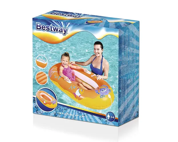 Barca gonflabila, cu manere. CaracteristiciBarcuta gonflabila cu manere Bestway: Dimensiuni 137 x 89 cm Diverse modele. Pretul este pentru o singura bucata. Fiecare model se achizitioneaza separat. Produsul cu denumirea Barcuta gonflabila cu manere Bestway face parte din brandul Bentley, se afla in categoria Jucarii magnetice si subcategoria