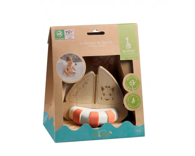 Fabricata din cauciuc si lemn 100 natural, datorita texturii, inelul este perfect pentru ameliorarea durerilor gingivale ale celui mic..barcuta pluteste deasupra apei in timp ce inelul de dentitie det Produsul cu denumirea Barcuta So Pure Sophie la girafe face parte din brandul Vulli, se afla in categoria Igiena si ingrijire si subcategoria