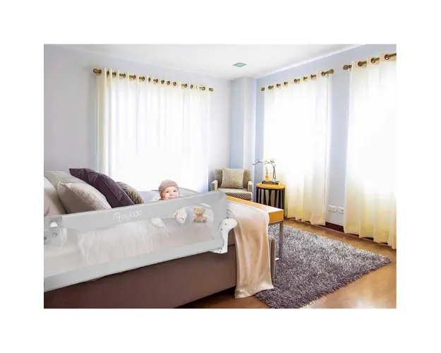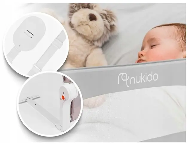 Bariera de siguranta elimina posibilitatea caderii copilului din pat. Produsul nostru indeplineste cele mai stricte standarde europene BS 79722001 si A12009.Rama husei este realizata din otel usor, da Produsul cu denumirea Bariera de protectie pentru pat 150x35 x42 cm Nukido Gri face parte din brandul Ninco, se afla in categoria Costume carnaval copii si subcategoria