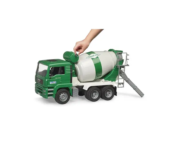 Caracteristici Betoniera Bruder MAN TGA 02739: Betoniera este bazata pe modelul MAN TGA Cabina poate fi inclinata si ofera acces la motor Invarte tamburul de amestecare folosind manivela de pe rezervorul de apa Tamburul are se goleste inversand directia de rotire Spirala din interiorul tamburului ajuta la golirea continutului in partea din spate Include si o scara atasata Realizat din plastic ABS Scara: 1:16 Dimensiuni: 49 × 18 × 25.5 cm Produsul cu denumirea Betoniera Bruder MAN TGA 02739 face parte din brandul Brunnen, se afla in categoria Jucarii magnetice si subcategoria