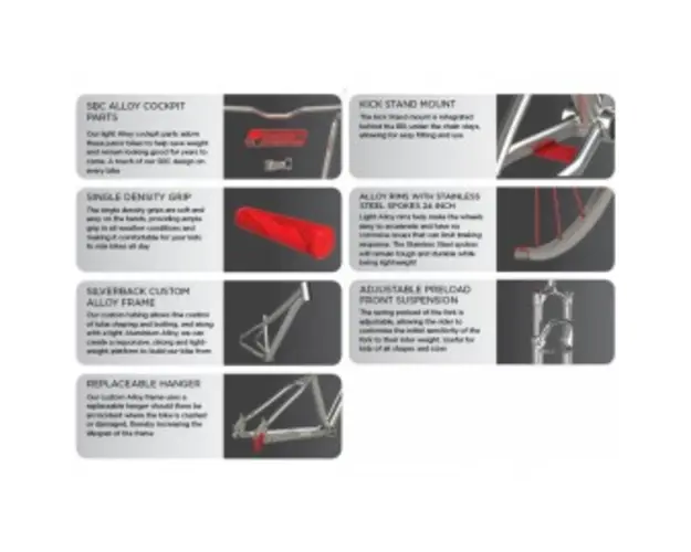 Bicicleta copii Spyke 24 Black Sand Pearl Apple Green Jewel White Greutate: 11.9 KG Kids Mountain SportSpecificatii: - Cadru - 24 Usor 6061 rama din aluminiu, tuburi formate cu aliaj, frana disc, suport si cric- Furca - Suntour M3020, 50mm Travel, 1/8 Steerer, Preload Adjustable, Alloy Crown and Lower- Jante - Weinmann CN520, Aliaj, 24H, Negru- Butuci - Spate: 24 h, Aliaj QR, Cupa reglabila si con cu contacte unghiulare, filetate, negru, - Fata: 24 h, Aliaj QR, Cupa reglabila si con unghiular rulmenti de contact, Negru- Anvelope - Kenda, 24”x 1.95”- Manete schimbator - Shimano Tourney Revoshift Fata: SL-RS36; Spate: SL-RS36,3x7 Twistshifter, Negre- Schimbator fata - Shimano FD-TZ30, Triple, Clamp-on 31.8mm, Negru- Schimbator spate - Shimano Altus RD-M280, Negru- Angrenaj - Suntour CW14, Aliaj, Square, Interschimbabil,w/ Chainguards/42/34/24T,L: 152mm, Negru- Caseta Pinioane - Shimano MF-TZ21, 7 Speed, 14-28T, Maro- Set Frane - Silverback, Aliaj Topit-Forjat, V-Brake, Black w/ Parghie 3 Degete Aliaj- Sa - Silverback Comfort Fit- Ghidon - Silverback, Aliaj 6061, W: 540mm; Back Sweep: 9; 20mm Rise x 25,4mm, Aliaj- Pipa - Silverback, Aliaj, 60mm, 15 x 25,4mm, Negru- Tija de SA - Silverback, Alloy 6061, W: 540mm; Back Sweep: 9; 20mm Rise x ?25,4mm, Aliaj Cum alegem corect bicicleta pentru copii ? Este foarte important sa alegem corect dimensiunea bicicletei copilului. Folositi ghidul nostru cu dimensiuni pentru a va ajuta sa gasiti bicicleta potrivita. Este simplu! Tot ce trebuie sa stiti este inaltimea copilului! Tineti minte un lucru, copilul dumneavoastra creste repede! Folositi inaltimea minima pentru selectarea dimensiunii rotilor bicicletei. Un lucru important de stiut este ca la bicicletele pentru copii se masoara diametrul rotilor (diametru), spre deosebire bicicletele pentru adulti, la care se masoara dimensiunea cadrului. Produsul cu denumirea Bicicleta copii Spyke 24 Black Sand Pearl Apple Green Jewel White face parte din brandul Silverback, se afla in categoria Leagane copii si subcategoria