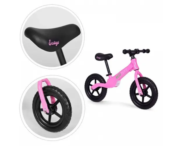 Bicicleta fara pedale cu roti din spuma EVA Ecotoys YM-BB-17 roz