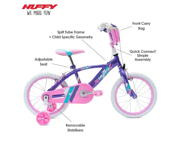 Cu aceasta bicicleta simpatica si eleganta, tinerii biciclisti vor invata sa mearga rapid si usor. Este potrivita pentru domnisoarele cu varsta intre 5 si maxim 7 ani (112-127cm), datorita rotilor Produsul cu denumirea Bicicleta fetite cu gentuta pentru ghidon Huffy Glimmer Violet 16 inch face parte din brandul Muffik, se afla in categoria Litere- limbaj- cifre si subcategoria