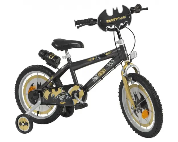 Bicicleta cu roti ajutatoare si sticluta de apa cu suport Batman 16 inch