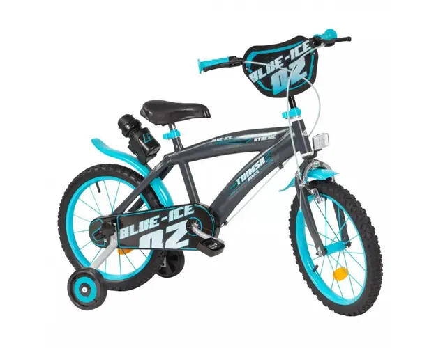 Bicicleta cu roti ajutatoare si sticluta de apa cu suport Blue Ice 16 inch