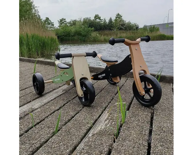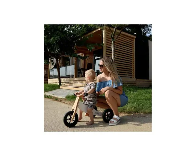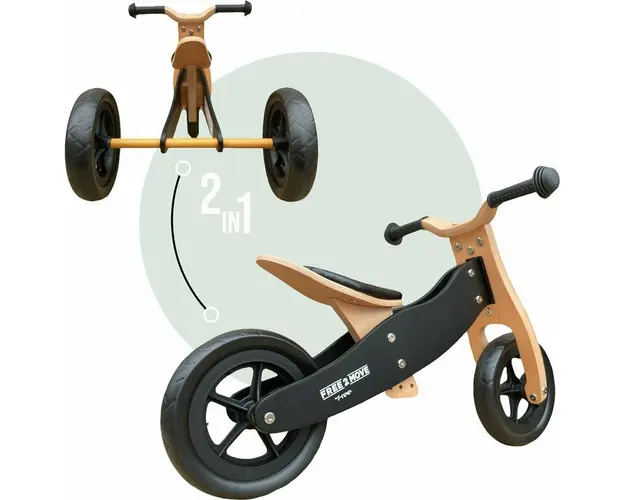 Bicicletatricicleta fara pedale din lemn 2 in 1 Brown White