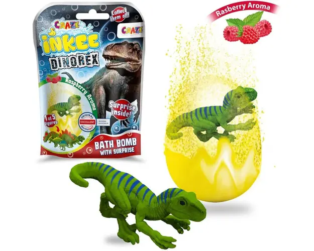 Wow Cum miroase a zmeura, ce spuma si ce culori frumoase Craze - Bila Efervescenta Inkee - Cu Surpriza Dinozaur pluteste pe suprafata apei si transforma apa intr-o noua lume.Ofera distractie multipla Produsul cu denumirea Bila efervescenta Inkee cu surpriza dinozaur face parte din brandul Coriex, se afla in categoria Igiena si ingrijire si subcategoria