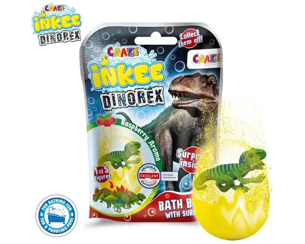 Wow Cum miroase a zmeura, ce spuma si ce culori frumoase Craze - Bila Efervescenta Inkee - Cu Surpriza Dinozaur pluteste pe suprafata apei si transforma apa intr-o noua lume.Ofera distractie multipla Produsul cu denumirea Bila efervescenta Inkee cu surpriza dinozaur face parte din brandul Coriex, se afla in categoria Igiena si ingrijire si subcategoria