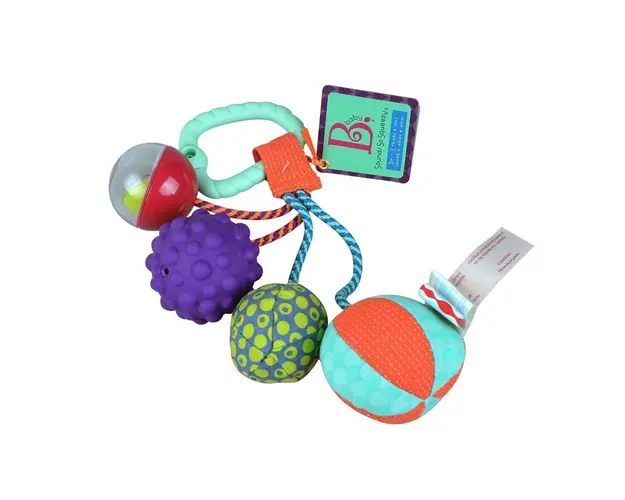 Zornaitoarea B.Toys include 4 bile cu texturi si sunete diferite care il vor tine ocupat pe cel mic multa vreme.Caracteristicifiecare bila este realizata din material diferit si emite sunete de zornai Produsul cu denumirea Bile zornaitoare de agatat B.Toys face parte din brandul Tp toys, se afla in categoria Leagane copii si subcategoria
