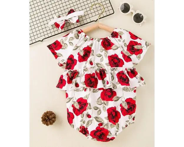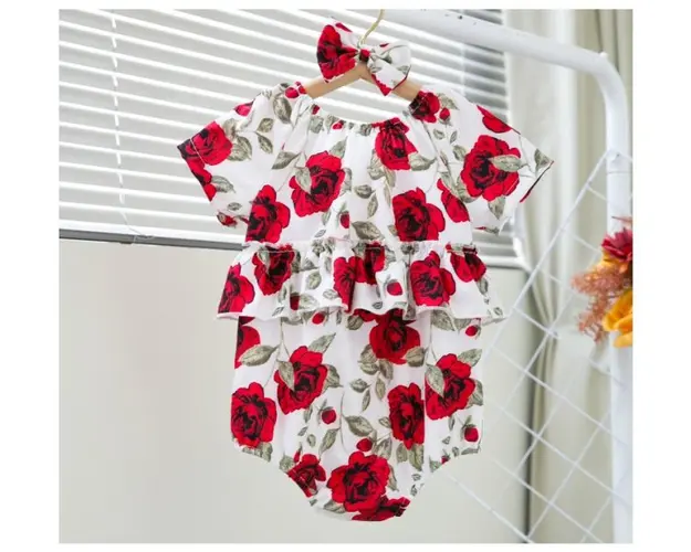 Marimi: 0-3, 3-6, 6-9, 9-12, 12-18 luni Material: 100% polyester Set pentru fetite format din: - Body alb, bufant, imprimat cu trandafiri rosii, cu volanase, cu o funda rosie aplicata in fata, se inchide cu capse intre picioruse; - bentita asortata; Produsul cu denumirea Body cu volanase pentru fetite - Roses face parte din brandul Eurobaby, se afla in categoria Prepararea hranei si subcategoria