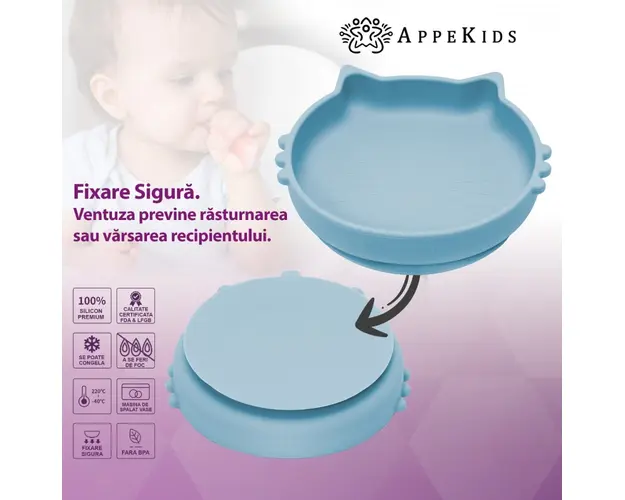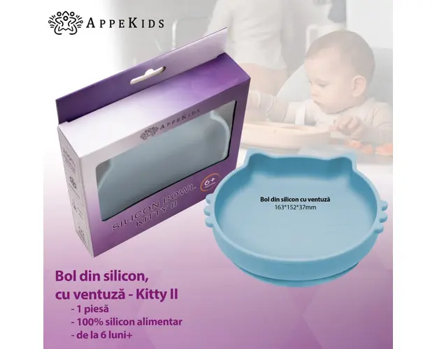 Bol din silicon AppeKids Kitty II Aqua Blue