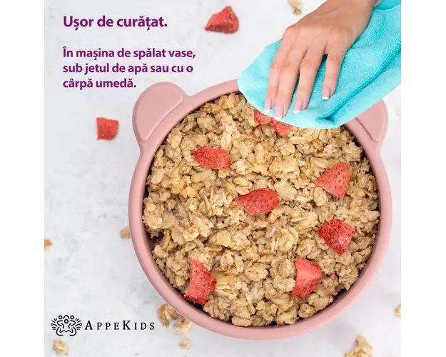 Suntem parinti si intotdeauna ne-am dorit tot ceea ce este mai bun pentru copiii nostri si ai tai.nbspStim ca toti parintii sunt ocupati si coplesiti de cotidian si ca isi doresc si ei cateva momente Produsul cu denumirea Bol din silicon cu ventuza AppeKids The Little Bear Old Rose face parte din brandul Mykids, se afla in categoria Animale si subcategoria