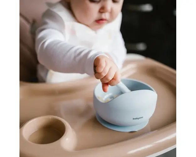 Bol din silicon cu ventuza pentru copii Babyono albastru