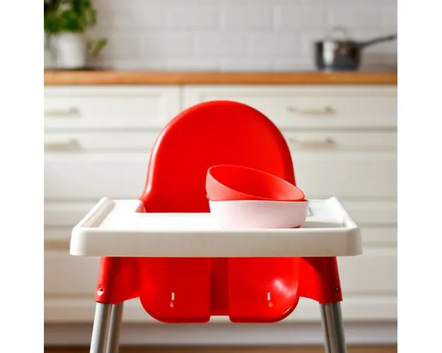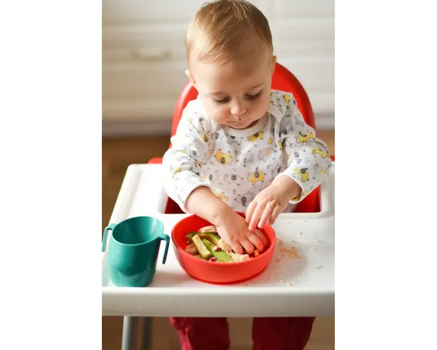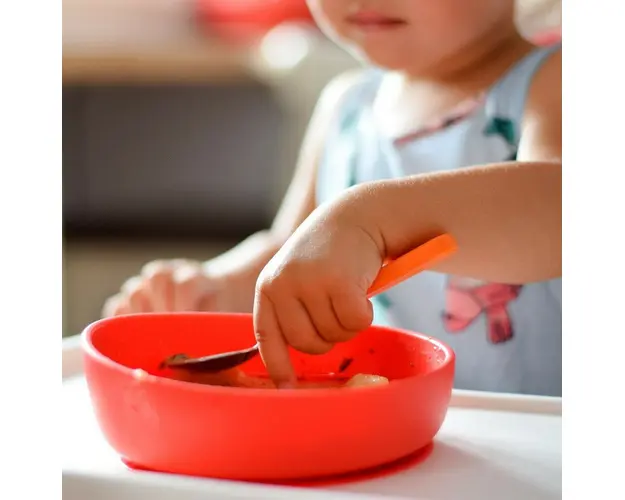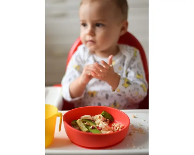 Bol inclinat Doidy cu ventuza din silicon 3 luni+ Rosu