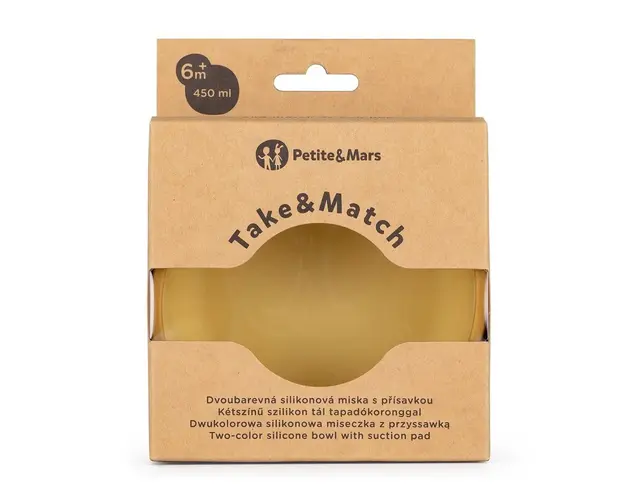 Bol PetiteMars cu ventuza din silicon TakeMatch galben