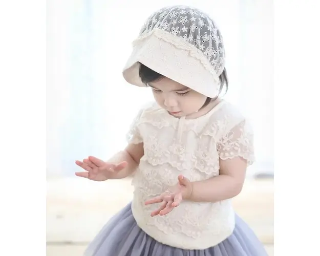 Boneta ivoire cu floricele brodate