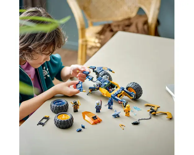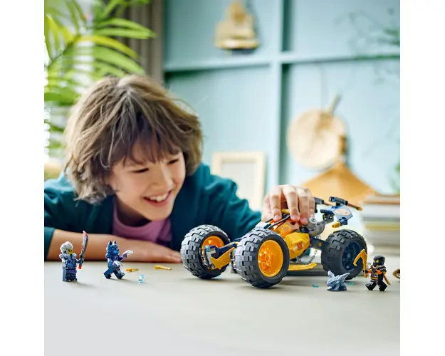 Fetele si baietii de 7+ ani pot recrea batalii palpitante din sezonul 2 al serialului TV NINJAGO® Dragons Rising cu setul LEGO® NINJAGO® Vehiculul de teren ninja al lui Arin (71811). Acest set de aventura pentru copii include un vehicul de jucarie in culoarea galbena a lui Arin, care are roti mobile, suspensie, un cockpit care se deschide cu spatiu pentru 2 minifigurine, 2 lansatoare de piroane cu 6 piroane si un carlig mare in partea din spate pentru a captura ticalosi.Jucaria ninja include un model Bebe Riyu si 4 minifigurine NINJAGO: cataratorul Cole cu un carlig de catarare si o sabie katana, Arin cu un carlig de catarare si o sabie katana, un Razboinic cu masca de lup si gheare si Cinder cu o sabie.Celelalte jucarii ninja construibile din gama LEGO NINJAGO pentru copii includ roboti, dragoni si temple, astfel incat fanii pot interpreta pe roluri scene de actiune cu eroii lor (seturile sunt vandute separat). Fiecare set ninja poate fi creat cu aplicatia LEGO Builder, care te ghideaza pe tine si pe copilul tau intr-o aventura de constructie simpla si intuitiva. Produsul cu denumirea Buggy-ul Off-Road al lui Arin face parte din brandul Coletto, se afla in categoria Eric carle si subcategoria Produse noi