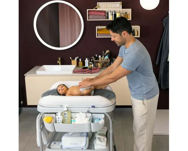 Cadita cu masa de infasat Chicco GreyMelange 0luni+