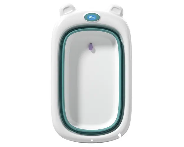 Cadita pliabila Little Mom Bear Green cu senzor de temperatura
