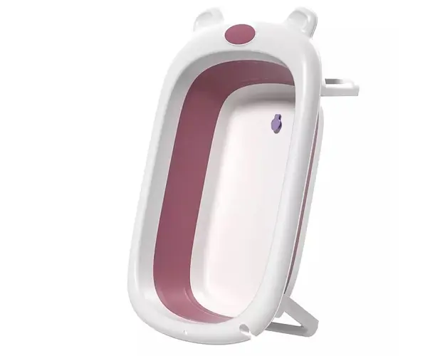Cadita pliabila Little Mom Bear Pink cu senzor de temperatura