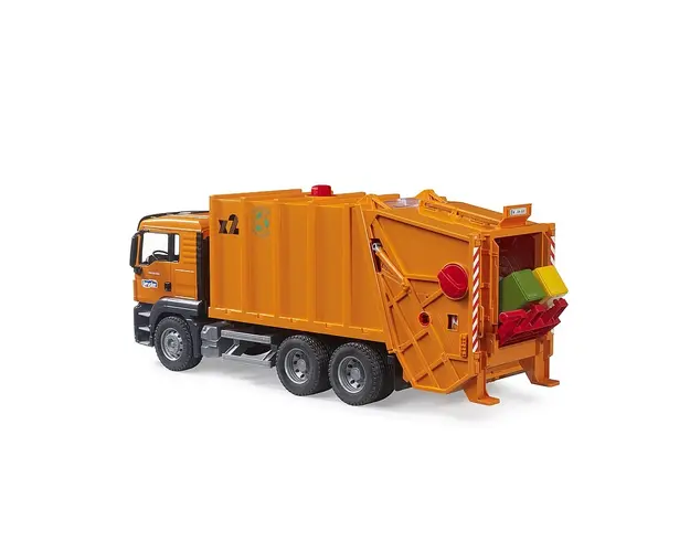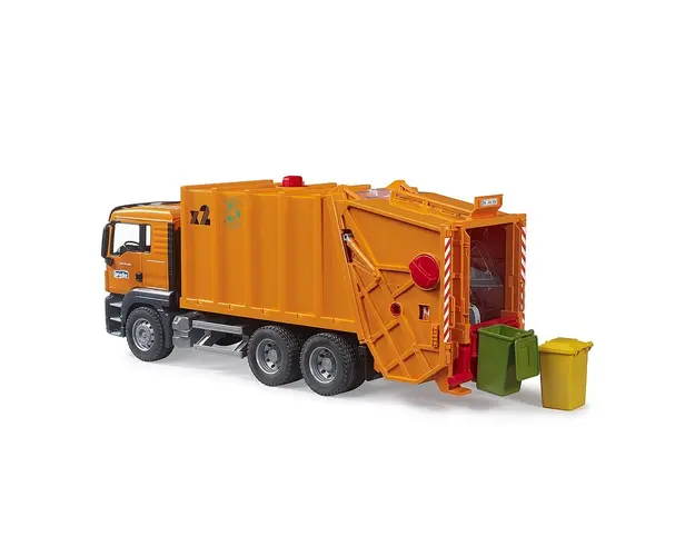 Caracteristici Camion de gunoi cu pubele MAN TGS: Camionul MAN TGS este vehiculul perfect pentru santierele de constructii, transporturi pe distrante lungi si distributie locala Datorita design-ului durabil, avand motoare puternice si fiind capabil de o sarcina peste medie, camionul este foarte versatil Cabina in 2 tonuri poate fi deschisa si este locul perfect pentru o figurina bworld (vanduta separat) Intreg procesul de incarcare si descarcare este controlat de un mecanism rotativ Astfel, 2 tomberoane pot fi golite concomitent Cand invarti rotita, continutul ajunge in presa functionala si este comprimat Acum este gata de transport Intreg procesul este vizibil printr-o fereastra Gunoiul este transportat in partea din spate Setul poate fi completat cu tomberoanele 02607 (vandute separat) Portierele se pot deschide Oglinzile sunt rabatabile Realizat din plastic ABS Scara: 1:16 Dimensiuni: 63.5 × 25.5 × 18.5 cm Produsul cu denumirea Camion de gunoi cu pubele MAN TGS face parte din brandul Brunnen, se afla in categoria Jucarii magnetice si subcategoria