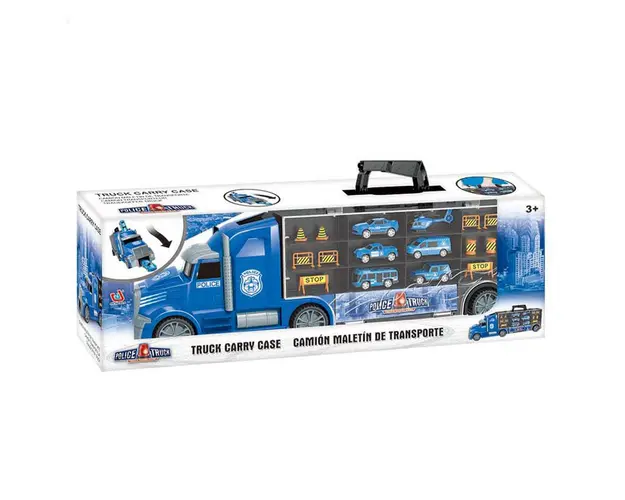 Саrасtеrіѕtісі Camion de politie transportator cu masini si elicopter: Raufacatorii nu vor avea cum sa scape in fata unui echipaj de politie complet! Imagineaza-ti ca esti coordonatorul echipei de politie Camionul este o trusa de depozitare Capacul camionului se poate deschide pentru a putea pune masinutele si indicatoarele Cutia de depozitare este prevazuta si cu un maner, pentru transport facil In set vei regasi 5 masinute si un mini-elicopter, plus alte accesorii Jucaria ajuta la dezvoltarea miscarilor motorii fine si imaginatiei Ѕеtul contine: 1 Cutie depozitare in forma de camion 5 masinute 1 mіnі еlісорtеr Іndісаtоаrе rutіеrе sі ассеѕоrіі Produsul cu denumirea Camion de politie transportator cu masini si elicopter face parte din brandul , se afla in categoria Jucarii magnetice si subcategoria