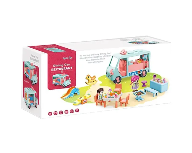 Caracteristici: Descopera camionul restaurant cu figurine Ocie Touring Camionul se deschide si dezvaluie un restaurant Setul dezvolta jocurile de rol Setul contine: Restaurant mobil 2 figurine 1 masuta si 3 scaune Accesorii 1 tobogan si 1 leagan 1 foaie cu autocolante Produsul cu denumirea Camion restaurant cu figurine Ocie Touring face parte din brandul Ocie, se afla in categoria Jucarii magnetice si subcategoria
