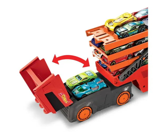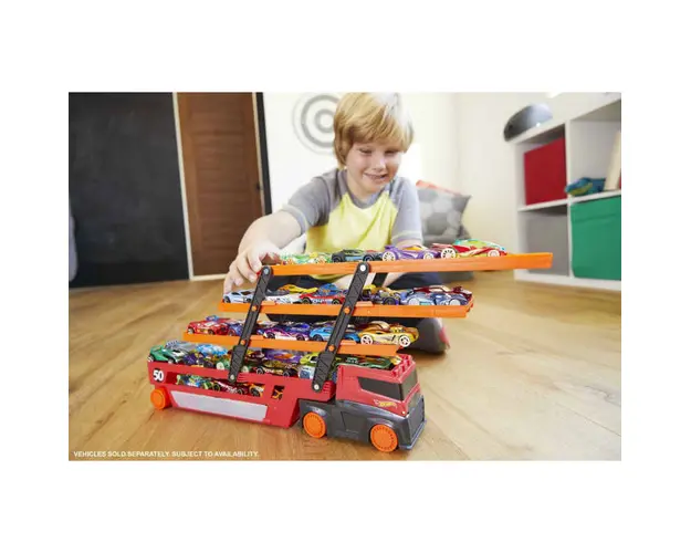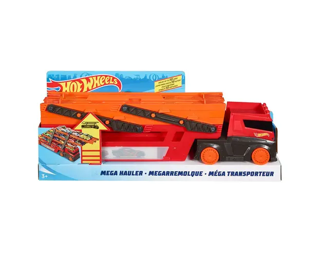 Caracteristici Camion transportator Hot Wheels Mega Hauler Rig: Camionul transportator Hauler Rig este perfect pentru noi aventuri distractive! In acest camion pot fi puse pana la 50 de masinute 1:64 in cele 6 compartimente Este prevazut cu o rampa care coboara si se poate conecta cu alte seturi Hot Wheels Cabina se deschide pentru a avea spatiu de inca 2 vehicule Partile transparente laterale se pot deschide pentru a pune cele mai grozave masinute acolo Conecteaza camionul transportator la pistele portocalii Hot Wheels (neincluse in set) Aduna toata colectia Hot Wheels! Dimensiune: 45.7 x 8.9 x 19 cm Mattel GHR48 Produsul cu denumirea Camion transportator Hot Wheels Mega Hauler Rig face parte din brandul Mattel, se afla in categoria Jucarii magnetice si subcategoria