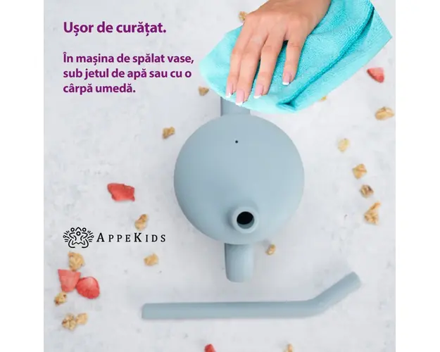 Suntem parinti si intotdeauna ne-am dorit tot ceea ce este mai bun pentru copiii nostri si ai tai.nbspStim ca toti parintii sunt ocupati si coplesiti de cotidian si ca isi doresc si ei cateva momente Produsul cu denumirea Cana din silicon cu pai AppeKids Aqua Blue face parte din brandul Mykids, se afla in categoria Animale si subcategoria
