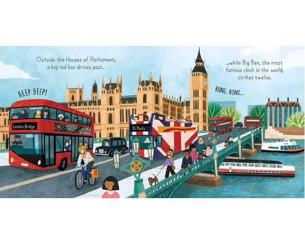 "London Sounds" este o carte muzicala ce prezinta sunetele caracteristice ale orasului Londra. Copiii vor apasa butoanele pentru a asculta sunetele, ceea ce ii va ajuta sa invete despre mediul urban si sa isi dezvolte abilitatile de ascultare.Numar de pagini: 10ISBN: 9781801318174Dimensiune: 210 x 210 mmVarsta: 0+ Produsul cu denumirea Carte pentru copii - London Sounds face parte din brandul Klorane, se afla in categoria Carte de colorat cu apa si subcategoria Usborne