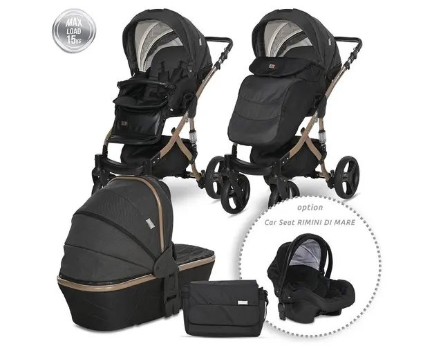 Caruciorul RIMINI PREMIUM este un sistem complet 2 in 1 ce contine landou , parte sport, geanta accesorii crucior, 2 plase de insecte si husa de ploaie.Optional, se poate achizitiona cosulet auto mode Produsul cu denumirea Carucior 2 in 1 Rimini Premium Black face parte din brandul Lorelli, se afla in categoria Leagane copii si subcategoria