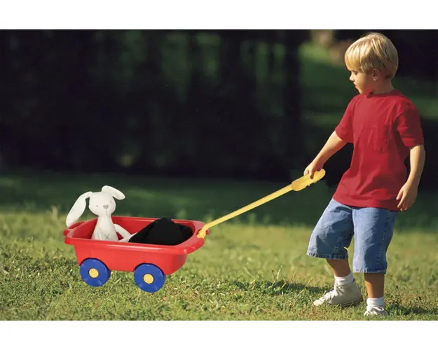 Caruciorul cu maner este accesoriul perfect pentru orice copilas. Este perfect atat pentru joaca in interior, cat si in aer liber. Copiii isi pot pozitiona jucariile pe carucior si pot merge in av Produsul cu denumirea Carucior de gradina cu maner 45 cm Red face parte din brandul Tonka, se afla in categoria Jucarii magnetice si subcategoria