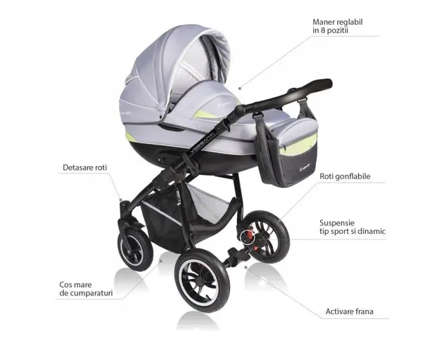 Colectia noua a carucioarelor Vessanti, aduce o noua definitie a design-ului inovativ, imbinand eleganta si rezistenta cu simplitatea functionalitatilor acestora.Carucioarele Vessanti au fost create b Produsul cu denumirea Carucior Vessanti Crooner 2 in 1 GreenGray face parte din brandul Vessanti, se afla in categoria Leagane copii si subcategoria