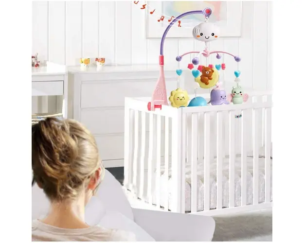 Carusel muzical pentru bebelusi cu Proiector Moon Bear Pink